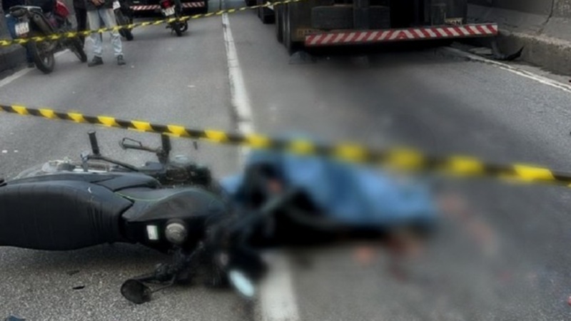 A batida envolvendo uma moto e um caminhão aconteceu em Navegantes, na tarde desta segunda-feira