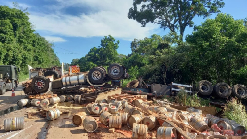 Colisão na BR-163 faz caminhão cair em ribanceira de 70 metros