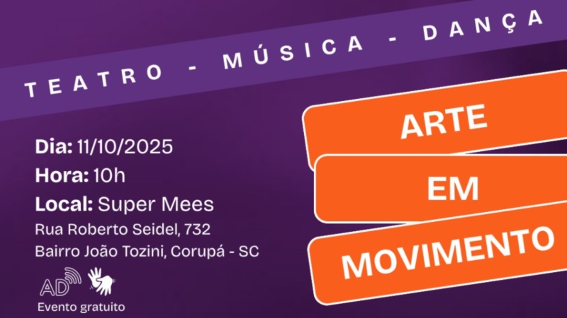 Corupá recebe o Projeto Arte em Movimento no próximo Sábado 11/10/2025
