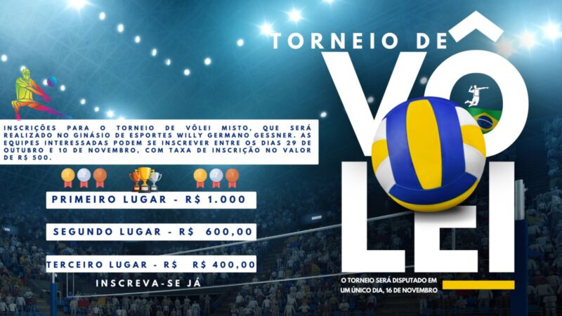 CORUPÁ ABRE INSCRIÇÕES PARA TORNEIO DE VÔLEI MISTO EM NOVEMBRO O torneio será disputado em um único dia, 16 de novemb...