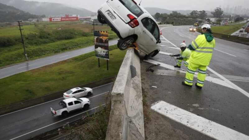 Motorista se perde no Morro do Boi e carro escapa por um fio de cair na BR-101 em SC