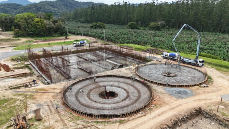 Estão sendo realizadas as concretagens dos reatores e decantadores. A nova estação irá substituir a ETE Ilha da Figueira, uma das mais antigas do município