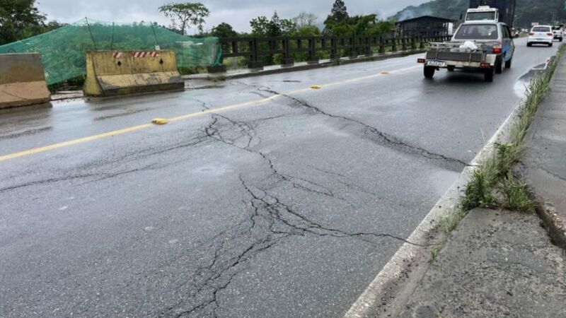 Afundamento de pista chama a atenção na BR-280 em Guaramirim