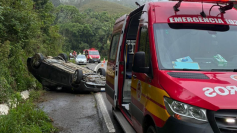 Carro capota na BR-280 entre São Bento do Sul e Corupá